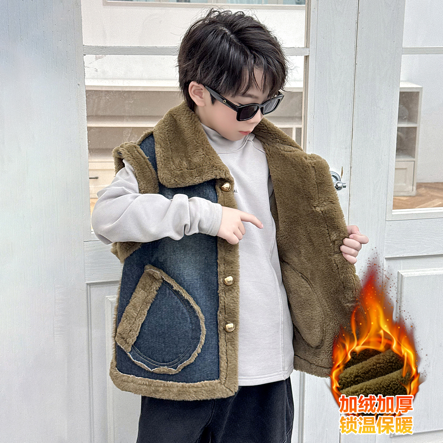 儿童装男童冬装马甲2025新款中大童秋冬牛仔坎肩外套男孩加绒冬季