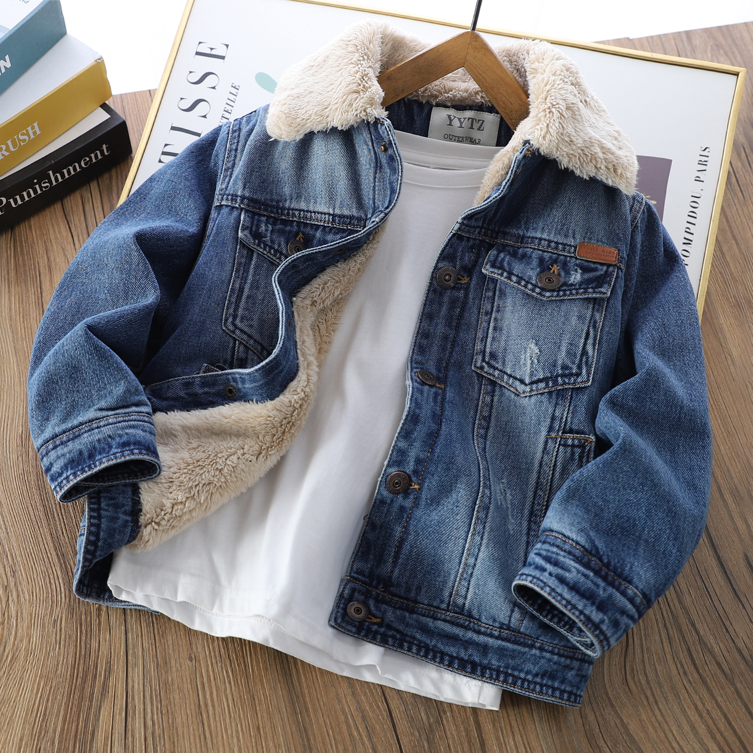 儿童装男童冬装牛仔外套2025新款中大童秋冬款夹棉男孩冬季加厚潮