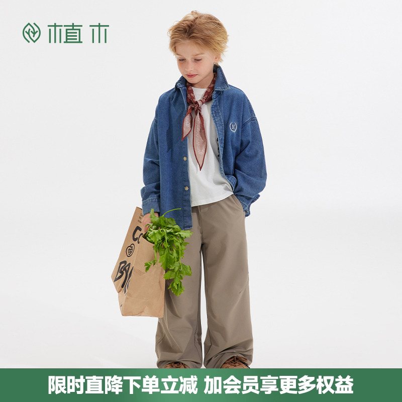 植木童装男童衬衫2025秋冬新款中大童字母牛仔开衫外套儿童衬衫