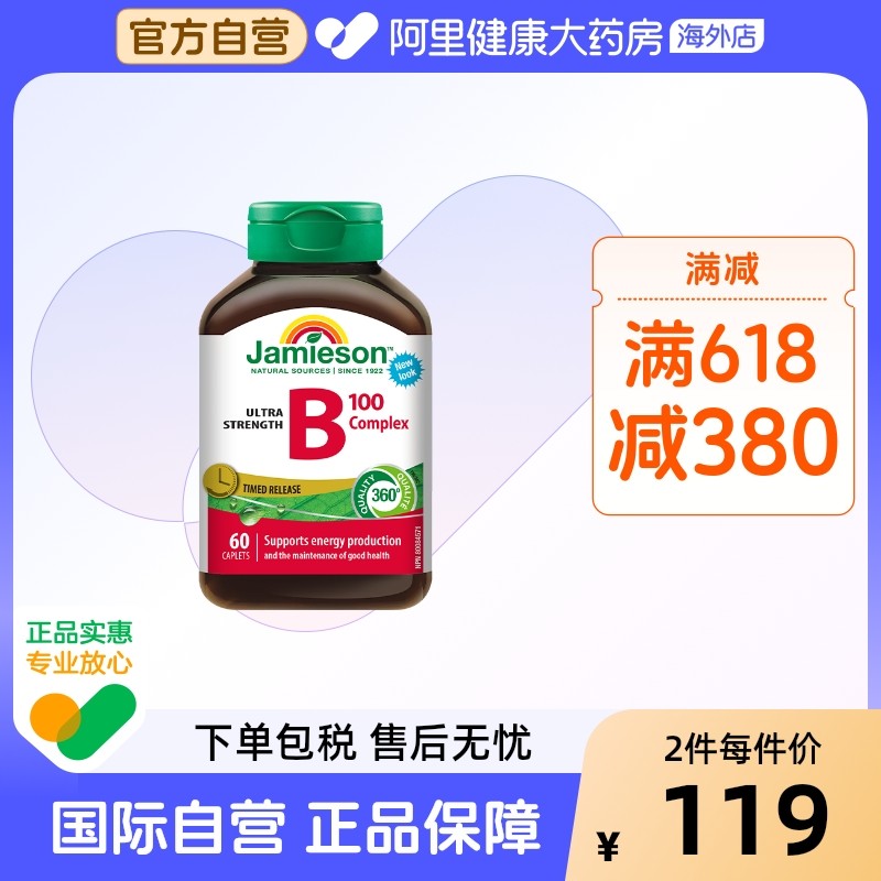 jamieson健美生维生素B族 复合VB群b3b12 缓释好吸收(B100)60片