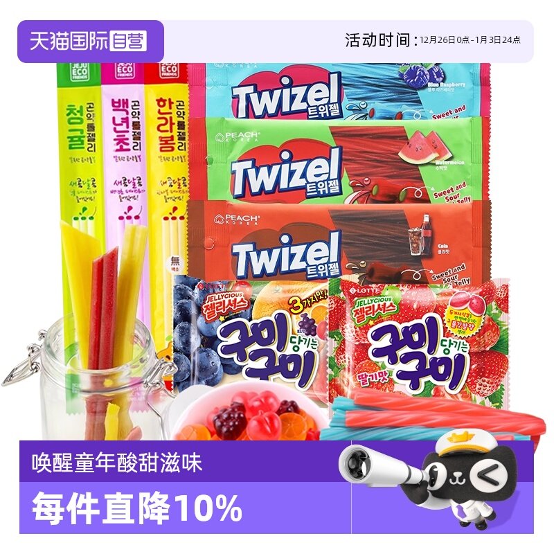 水果扭扭糖韩国进口YEM牌可乐味长条凝胶爆酸果汁儿童软糖果零食