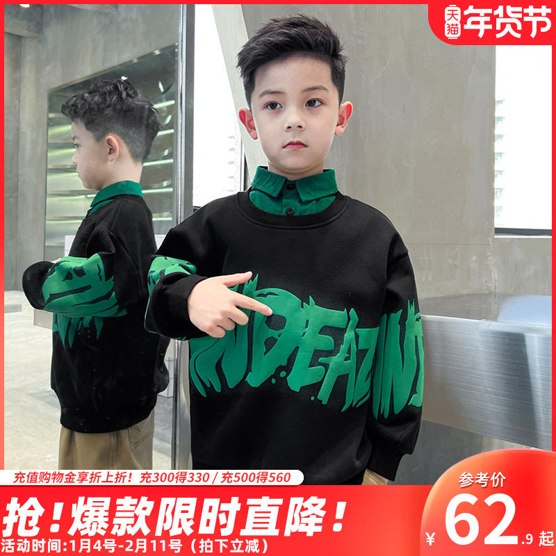 儿童衬衫领卫衣春季新款韩版宝宝洋气假两件外套男童V领长袖上衣