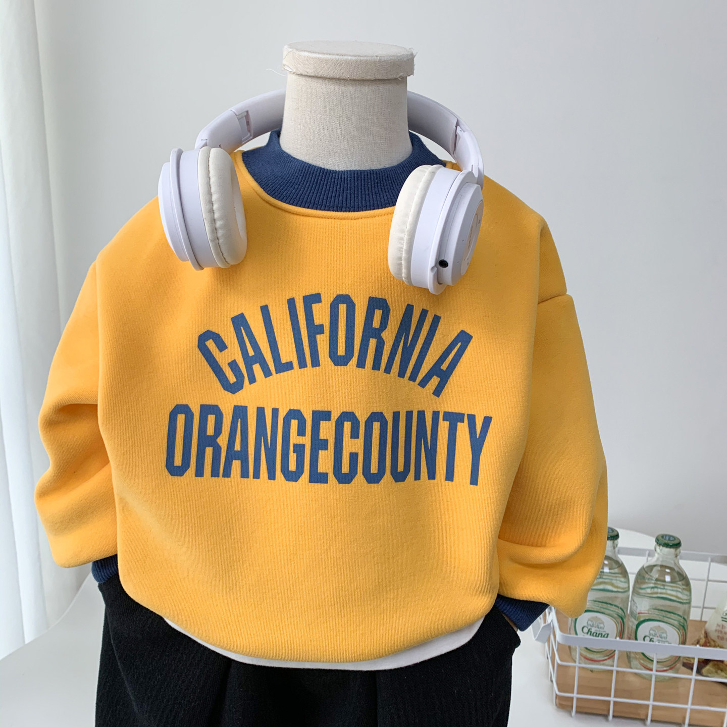 男童秋冬加绒卫衣2025新款儿童韩版休闲上衣洋气字母印花套头衫潮