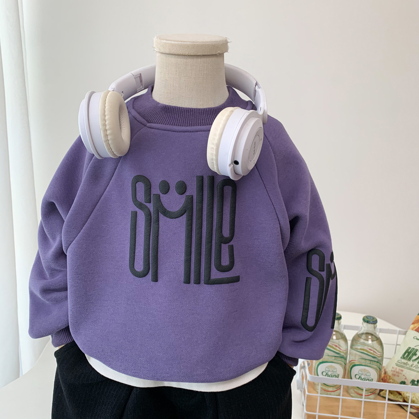 儿童加绒卫衣2025秋冬男童韩版宽松休闲上衣帅气男孩紫色套头衫潮