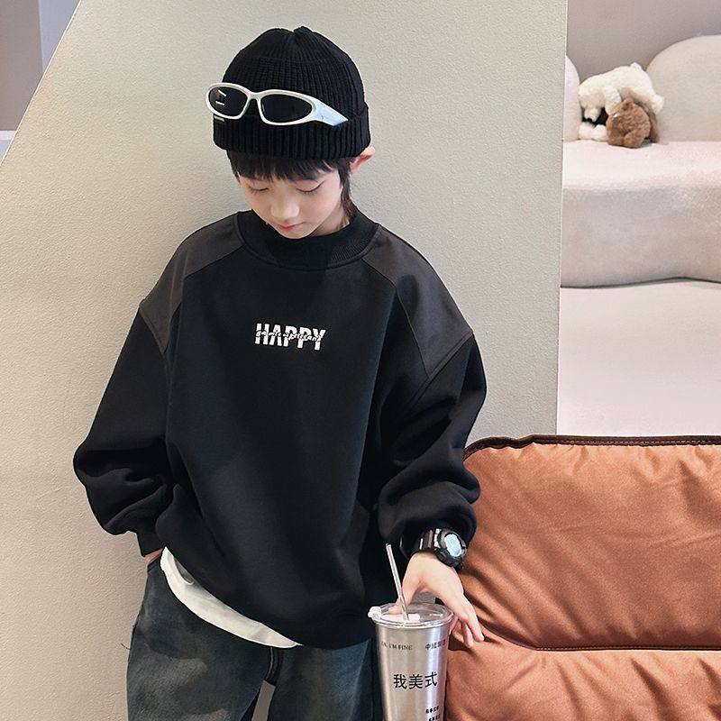 男童卫衣秋季宽松2025中大童休闲韩版长袖洋气儿童秋冬圆领加绒潮