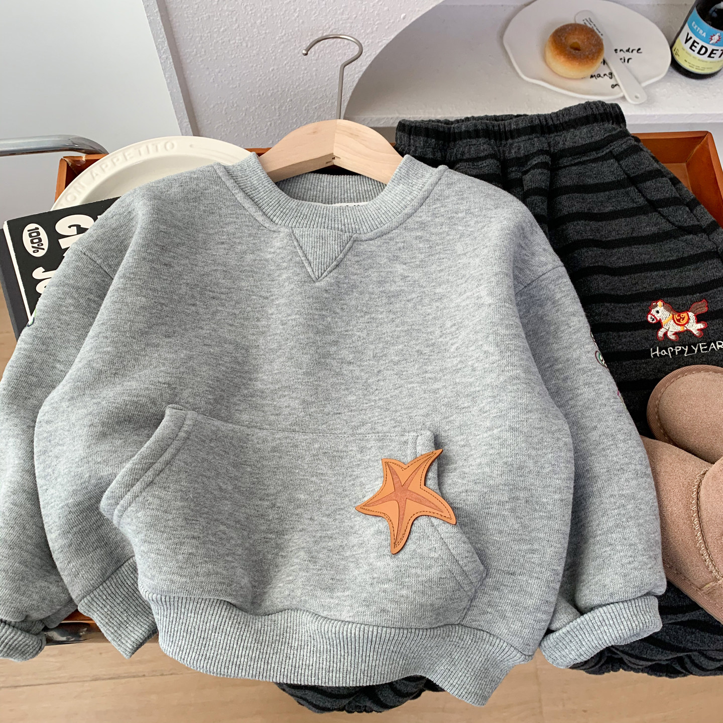男童冬装加绒卫衣2025新款儿童韩版套头加厚打底衫中小童时髦上衣