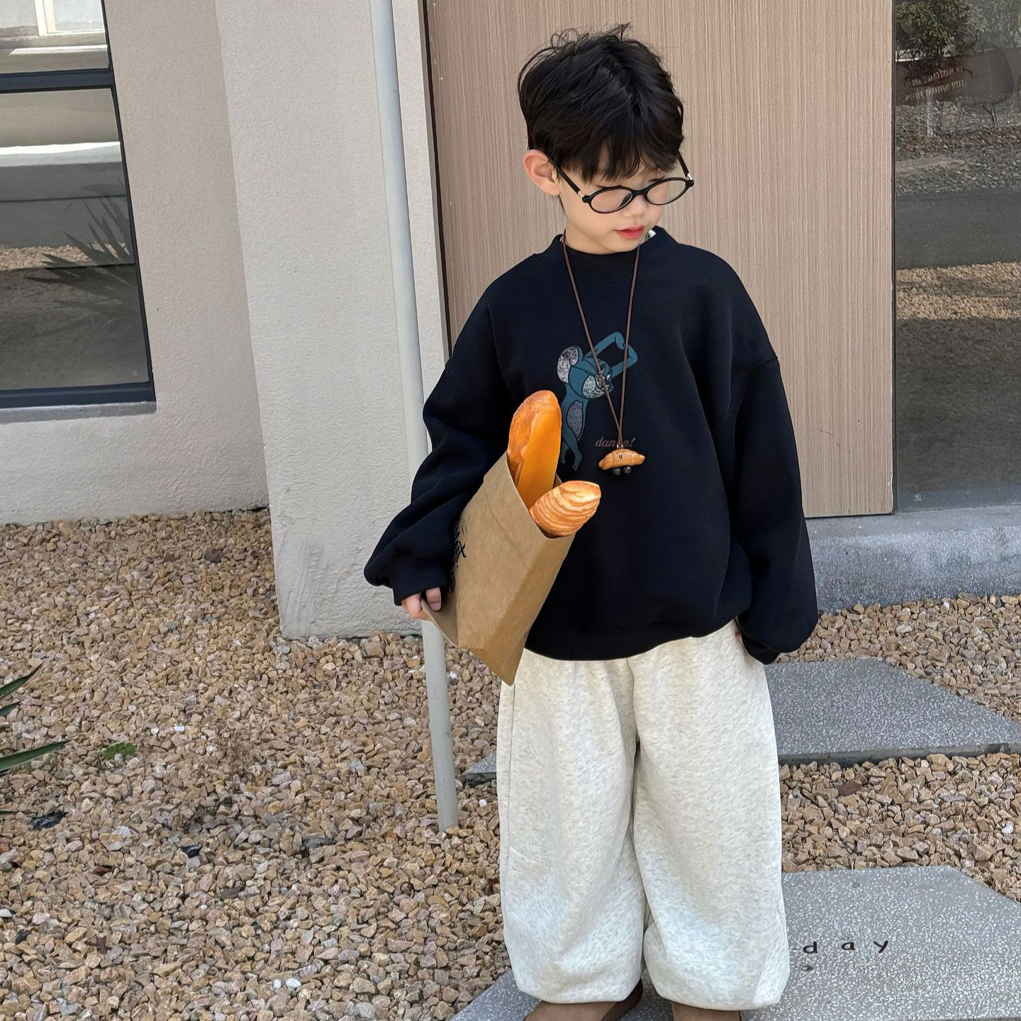 小杰家2025冬季新款韩版男童卡通加绒加厚保暖卫衣中大童上衣潮