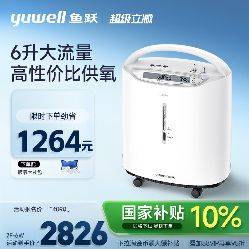 【6L新品】鱼跃医用制氧机家用老人吸氧机6L轻音雾化官方旗舰店