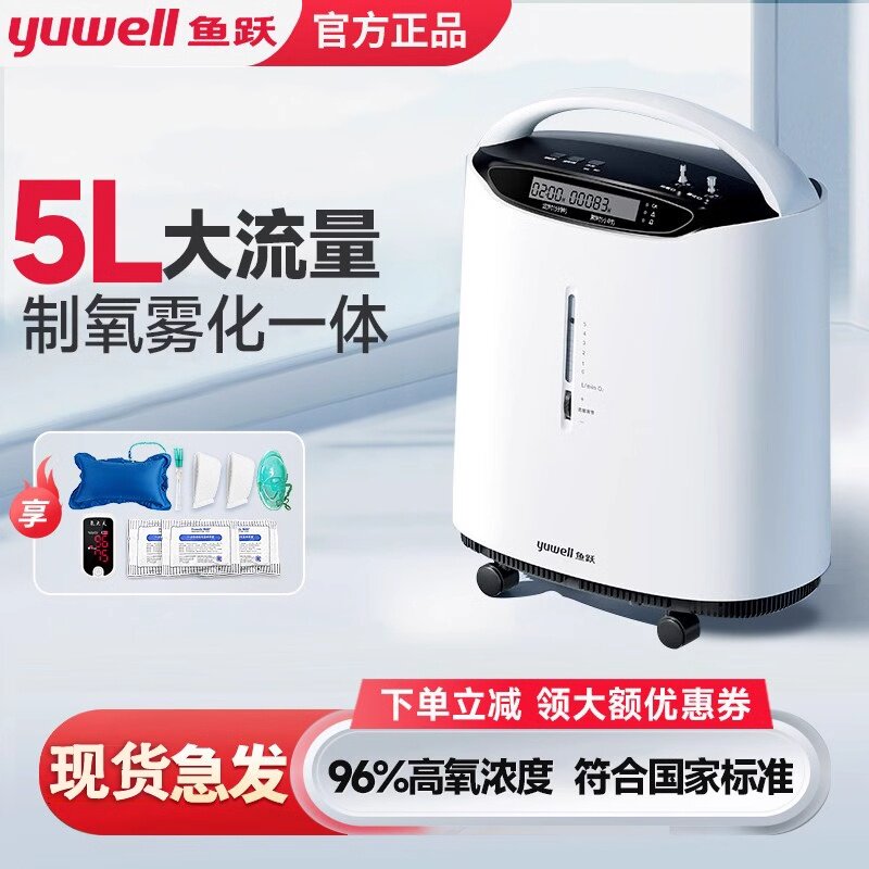 鱼跃制氧机家用5升8升吸氧机老人孕妇便携式氧气机制氧雾化一体机