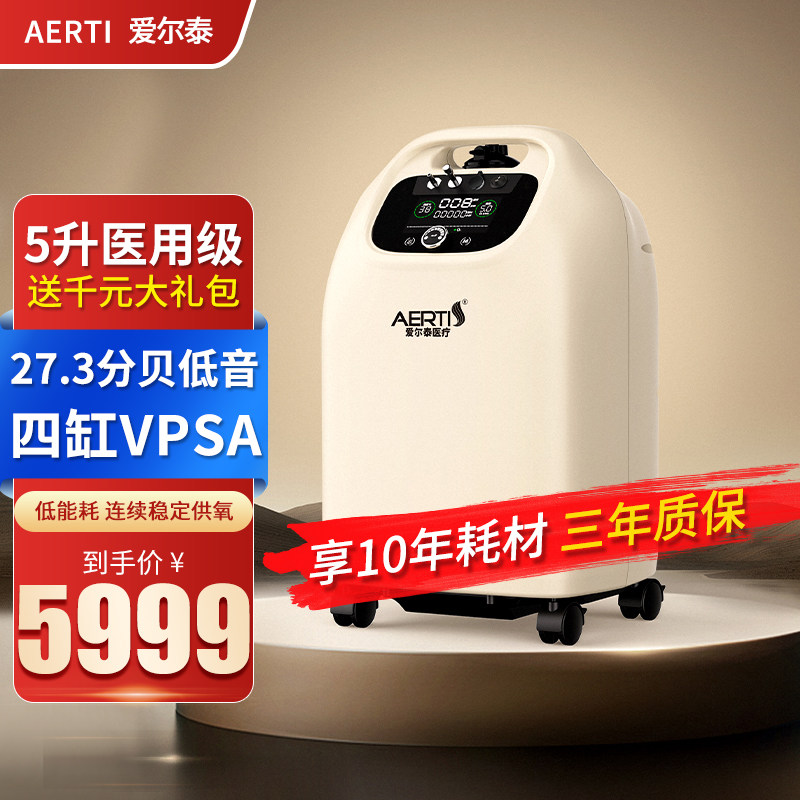 [27.3分贝]爱尔泰VPSA医用制氧机家用老人吸氧机轻音5L家庭氧气机