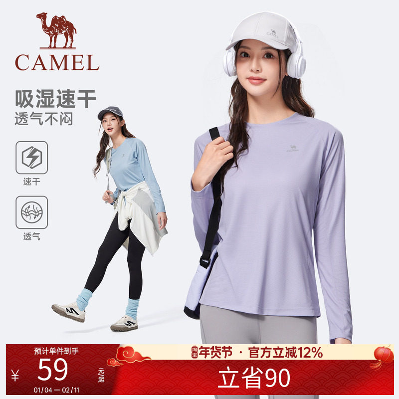 骆驼运动长袖T恤女士2025夏季户外速干衣跑步健身瑜伽服内搭上衣