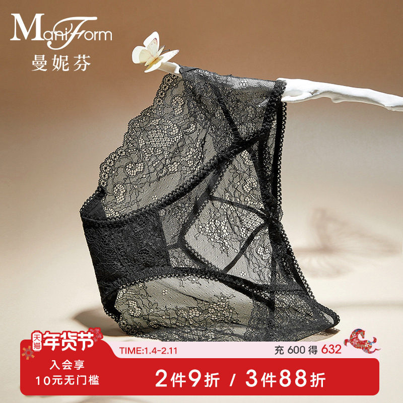 曼妮芬性感蕾丝本命年红色内裤女士三角裤中腰法式浪漫纯棉裆底裤