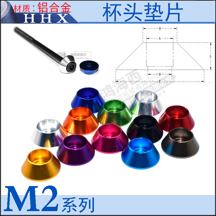 M2多彩色铝合金装饰锥形垫片圈凹凸鱼眼杯头螺丝介子进口模型6061