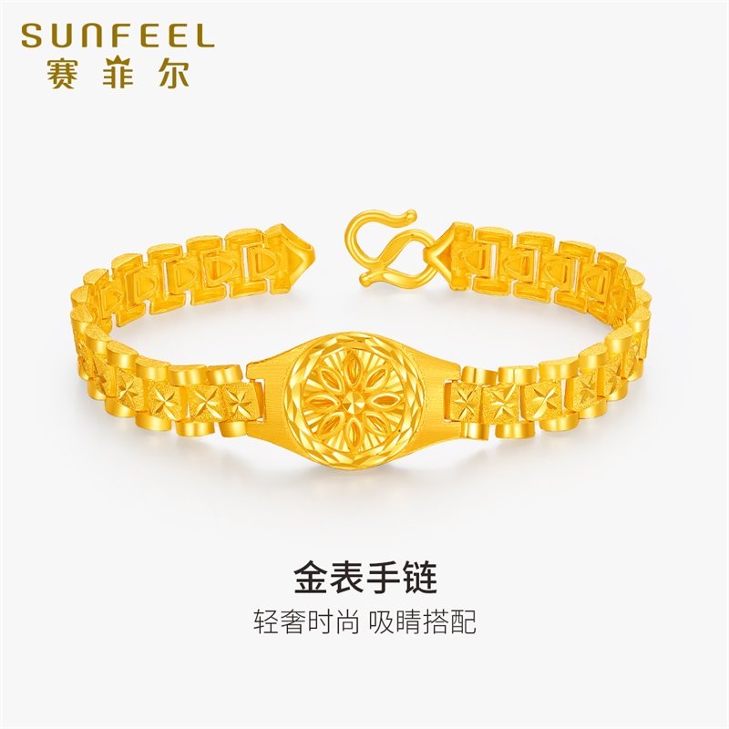 赛菲尔手饰足金999.9黄金手链女男士手表链款手表链送爸爸礼物