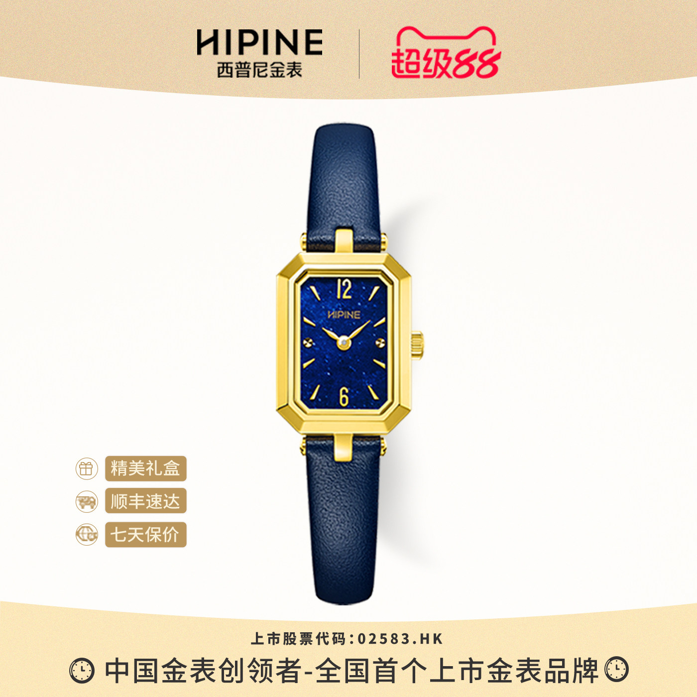 HIPINE西普尼金表999足金手表女轻奢黄金石英小方表手表生日礼物