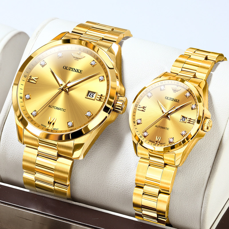 瑞士进口机芯情侣手表一对正品男女士机械表款纯金色名表品牌十大