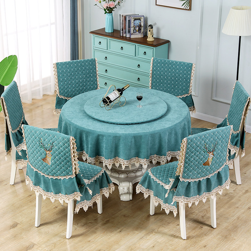 奢华餐桌布艺椅套椅垫套装家用中式圆桌布转盘套椅子套罩现代简约