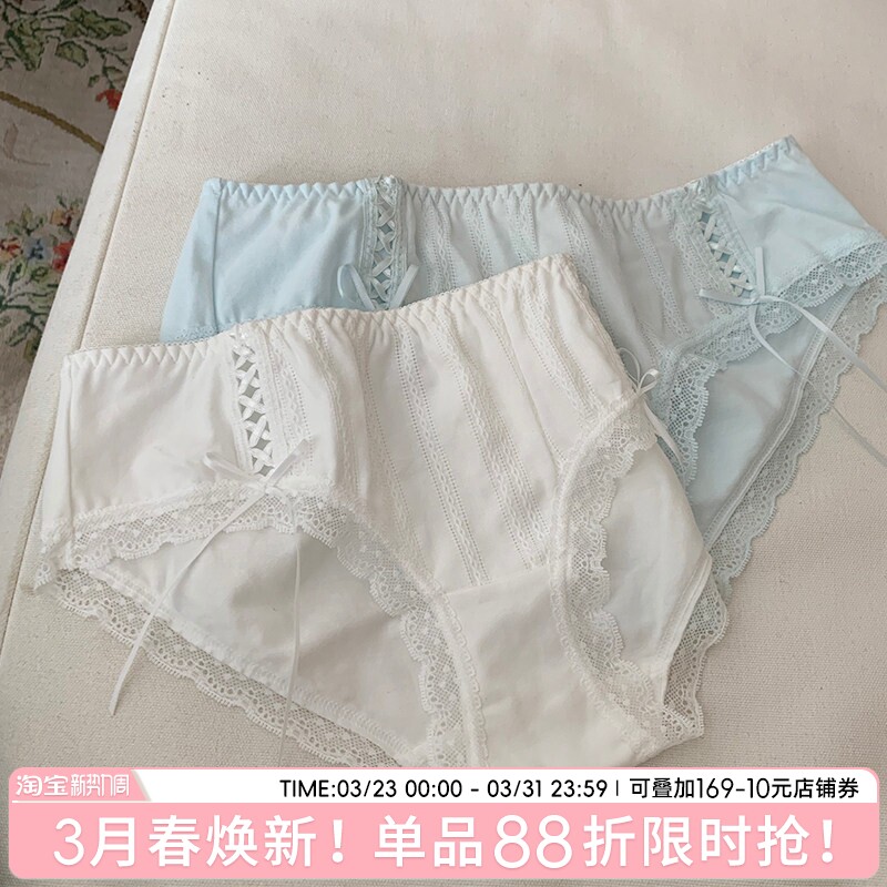 【三条装】内裤女士纯棉裆白色蕾丝花边日系透明蝴蝶结女生三角裤