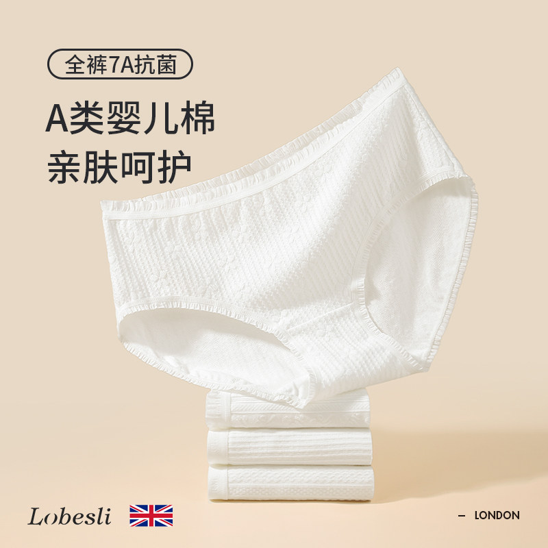 英国lobesli白色少女内裤女全棉a类纯棉抗菌可爱三角底裤中腰短裤