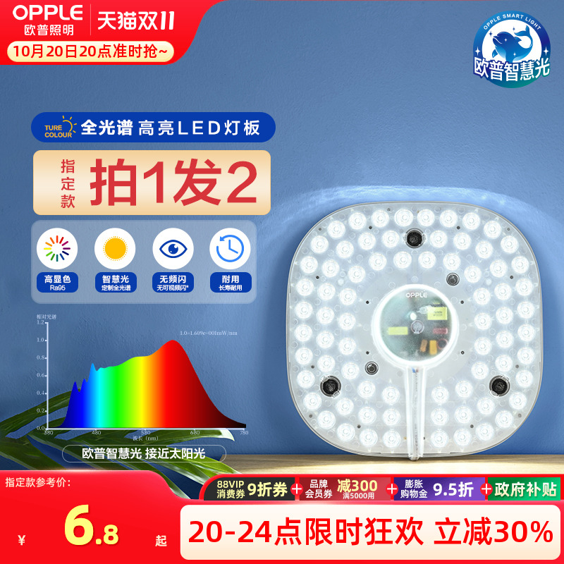 欧普照明led全光谱护眼吸顶灯灯盘改造圆形灯板节能灯芯灯泡灯条