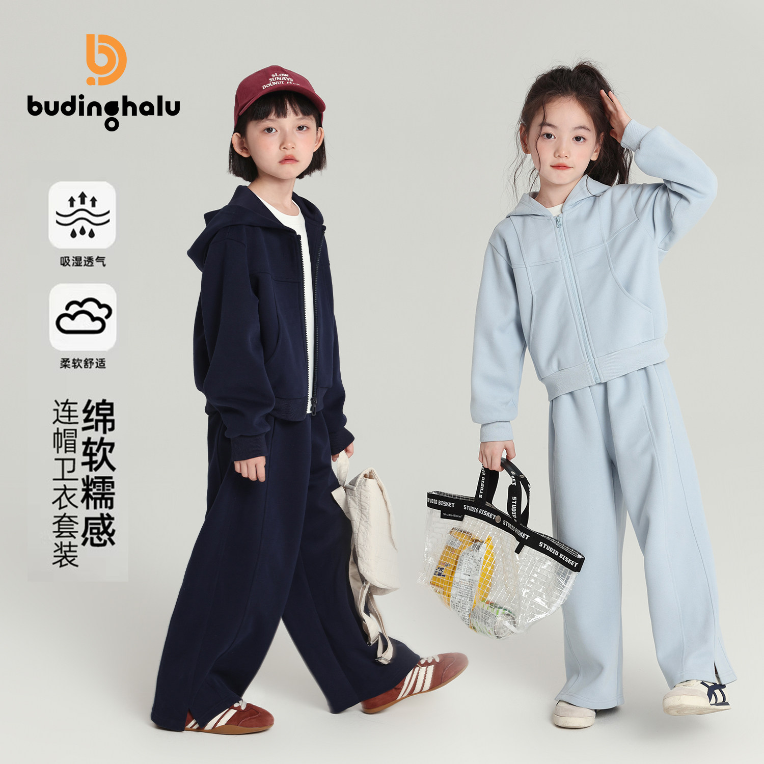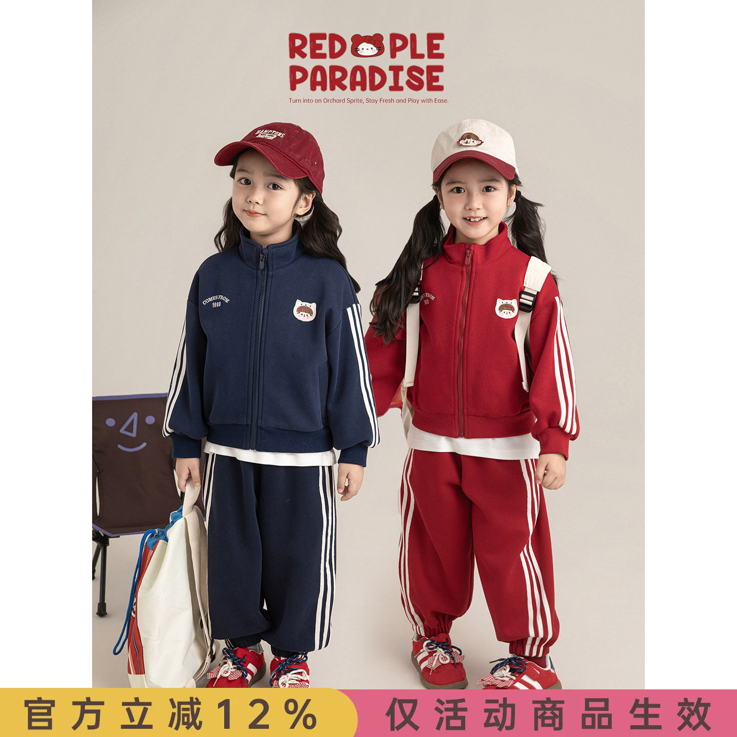 棉花堂儿童套装复古百搭新款宝宝卫衣女童外套春秋款男童运动套装