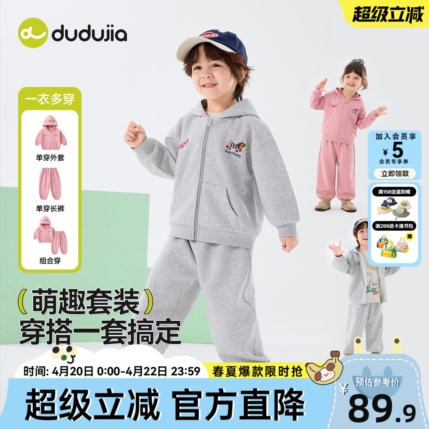 dudujia儿童套装男童背带裤宝宝童装女童裤子春秋婴童外套a类