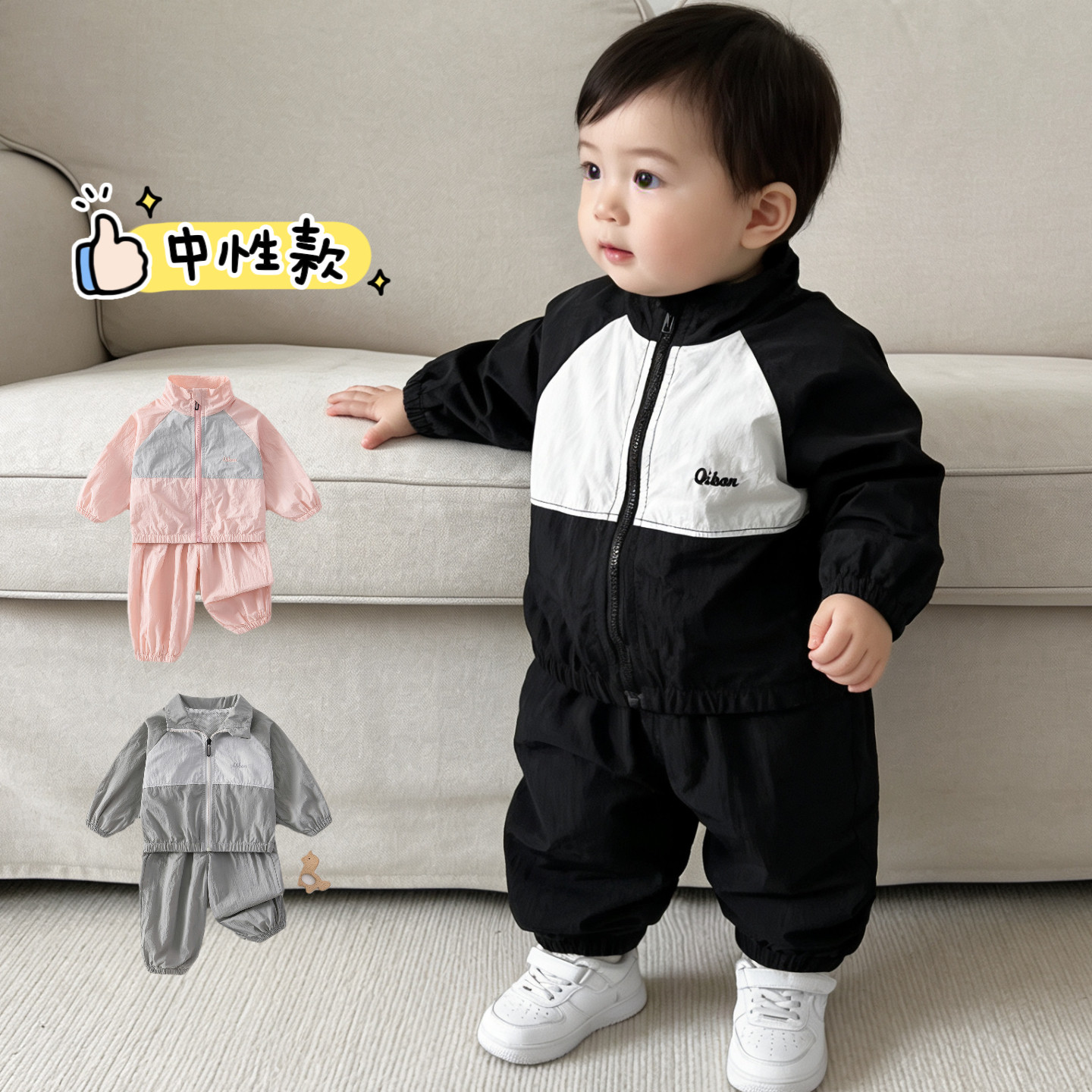 儿童冲锋衣套装2026春秋季新款男女小童韩版休闲连帽外套两件套