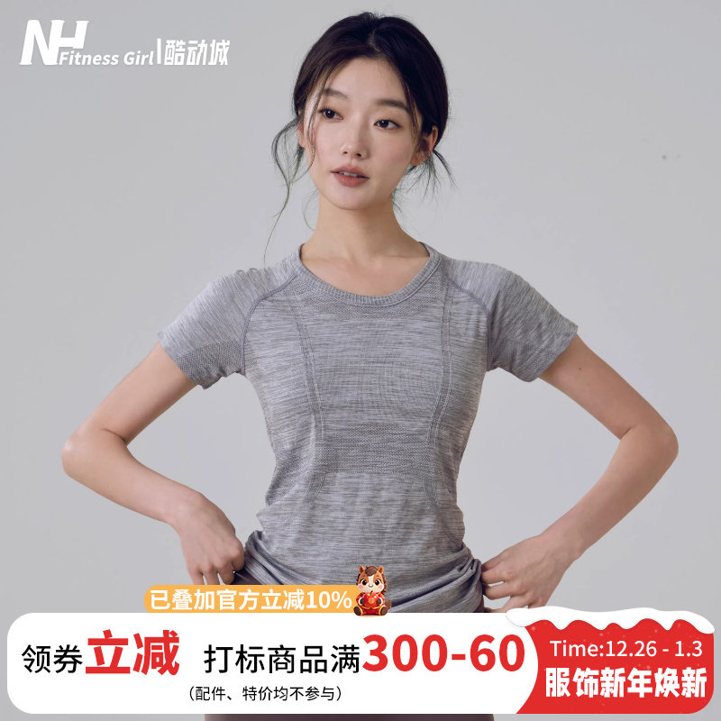 瑜伽服夏季运动上衣女紧身T恤跑步普拉提训练短袖薄款裸感健身服