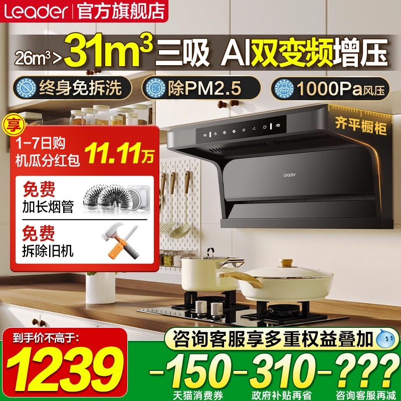 海尔leader顶侧双吸抽油烟机家用厨房大吸力吸油烟机抽烟机吸油机
