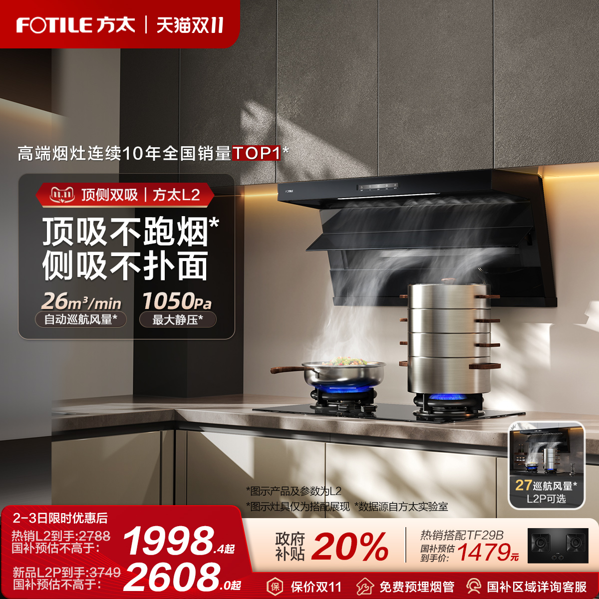 方太油烟机顶侧双吸抽油烟机L2/L2P厨房变频新品排烟机官方旗舰店