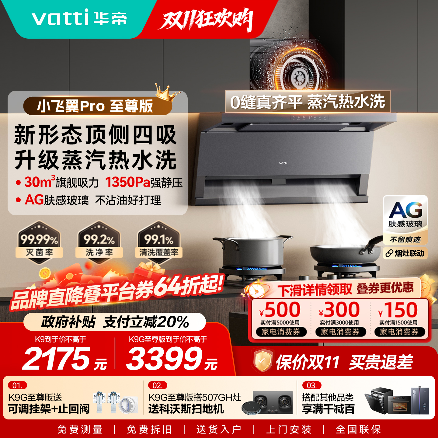 [小飞翼Pro]华帝油烟机K9/K9G顶侧双吸油烟机家用变频官方旗舰店