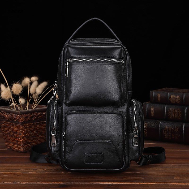 2020新款胸包男士包斜挎单肩包大容量休闲多功能潮流涤纶头层牛皮