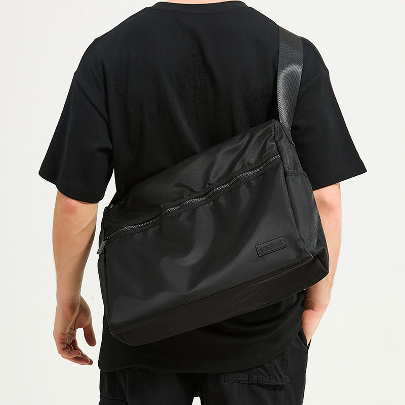 新款 涤纶男士斜挎包日系风工装邮差包休闲ins大容量男包单肩包男