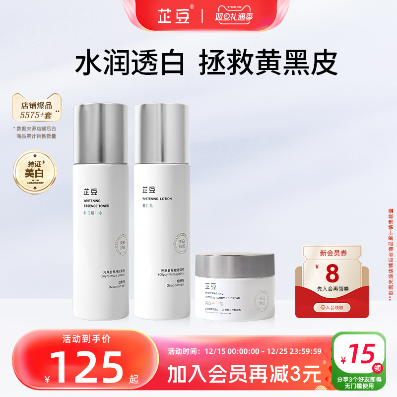 芷豆发光水乳套装美白淡斑去黄提亮肤色补水保湿护肤品学生女正品