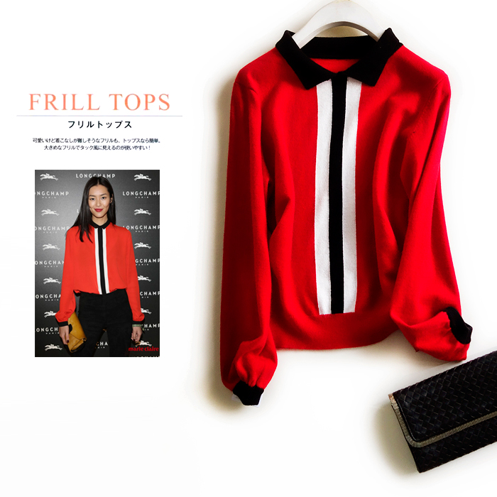 【明星同款】wana try翻领显瘦薄款针织衫打底衫慵懒感毛衣