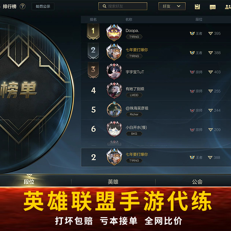 lol代练英雄联盟手游打排位陪玩定位赛刷宝典等级代币代肝通行证