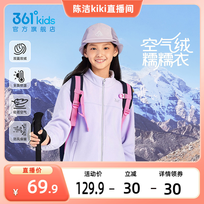 安踏儿童女童针织摇粒绒外套2025秋冬新款保暖女孩抗静电冬装外套