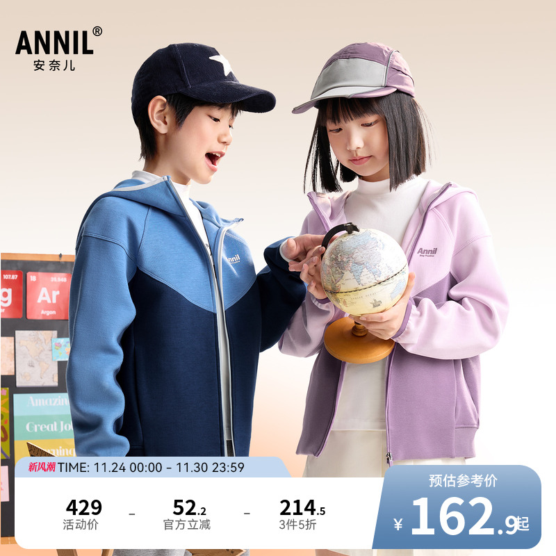 安奈儿童装男童女童针织外套2025秋新款运动风撞色保暖宽松弹力