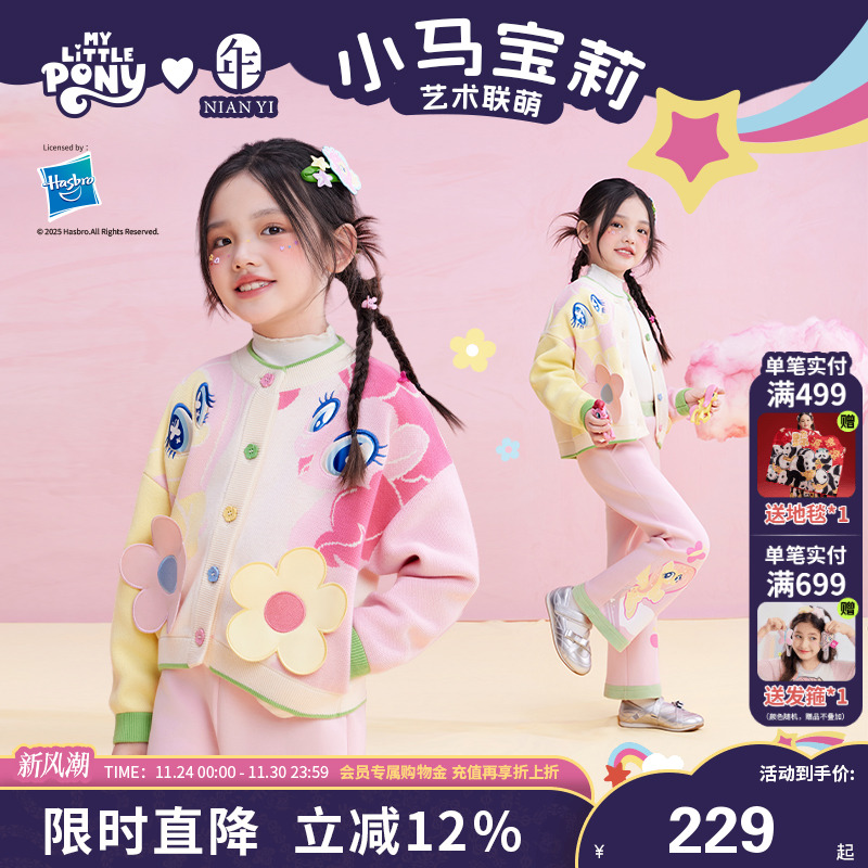 小马宝莉联名年衣童装儿童针织外套秋季新款女童针织毛衣上衣裤子