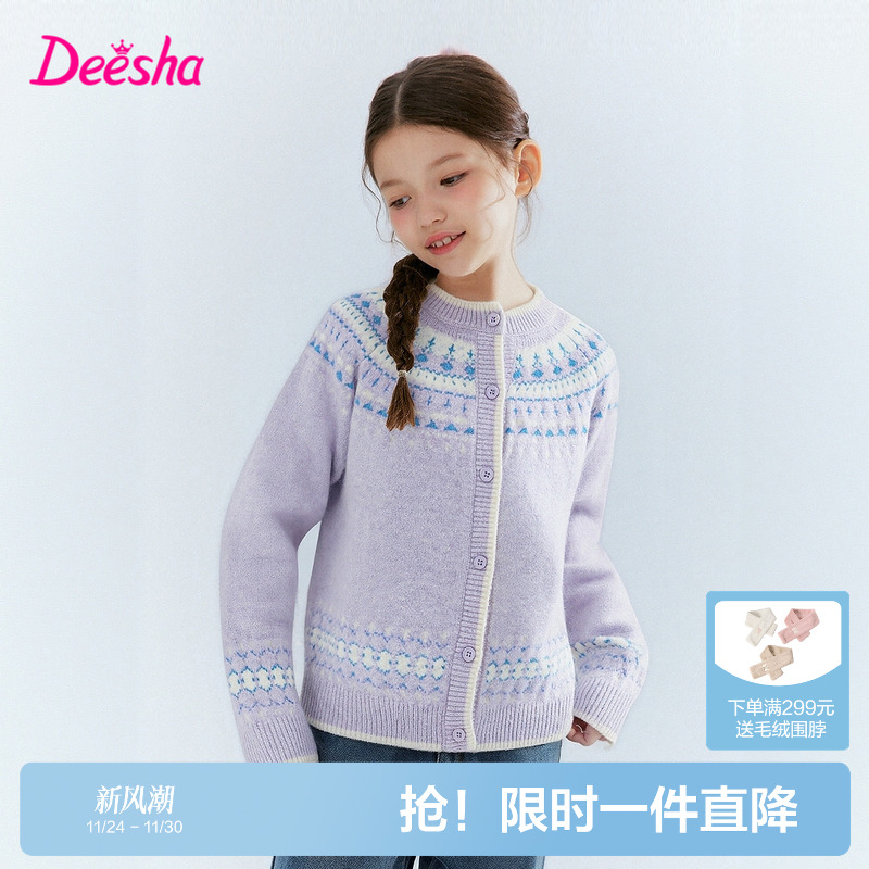 笛莎官方旗舰童装女童针织开衫秋季新款儿童外套大童上衣宝宝毛衣