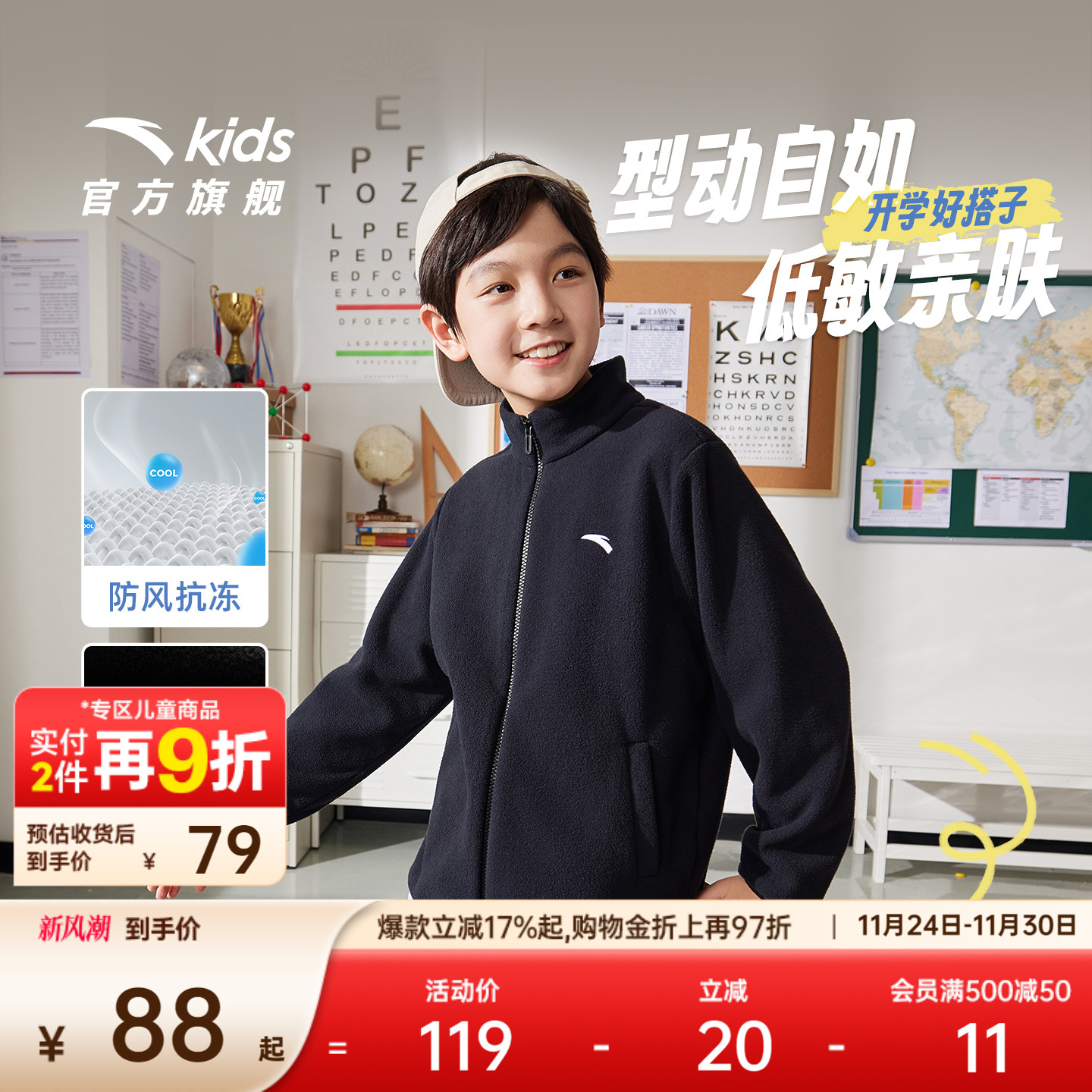 安踏儿童男童针织摇粒绒外套2025冬季新款舒适保暖女童抗静电上装