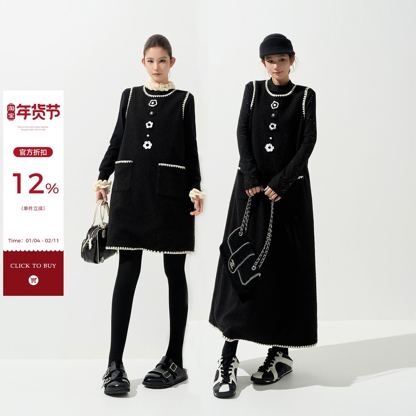 - 羊毛裙子秋冬连衣裙