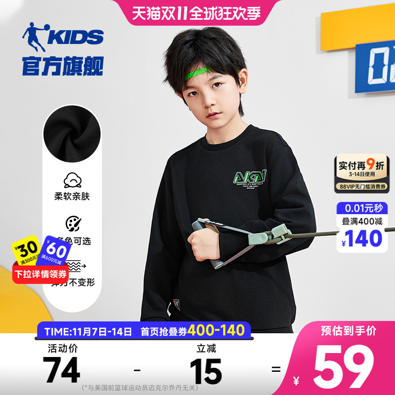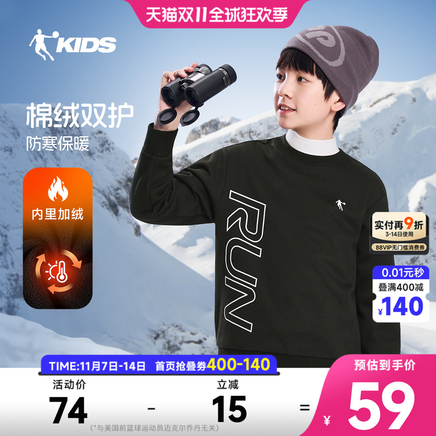 乔丹童装男童卫衣秋冬款2025新款中大童运动上衣儿童加绒长袖衣服