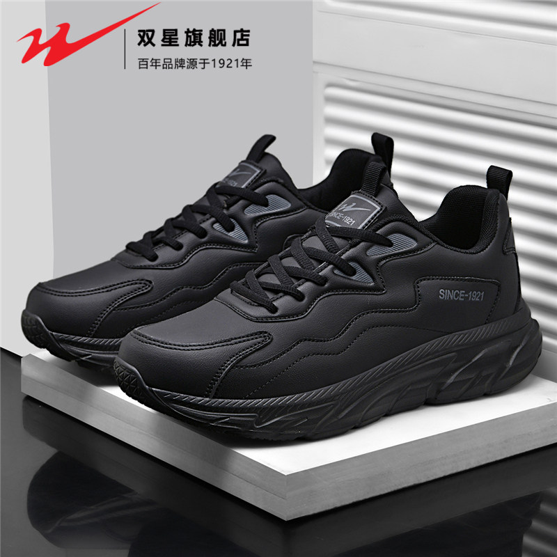 双星男鞋2026新款春季棉鞋皮面防水防滑男士运动软底轻便跑步鞋子
