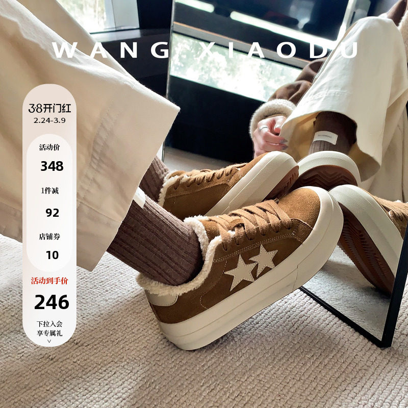 原创【王小毒】双星引力●3.5cm厚底豹纹板鞋女毛毛绒低帮休闲鞋