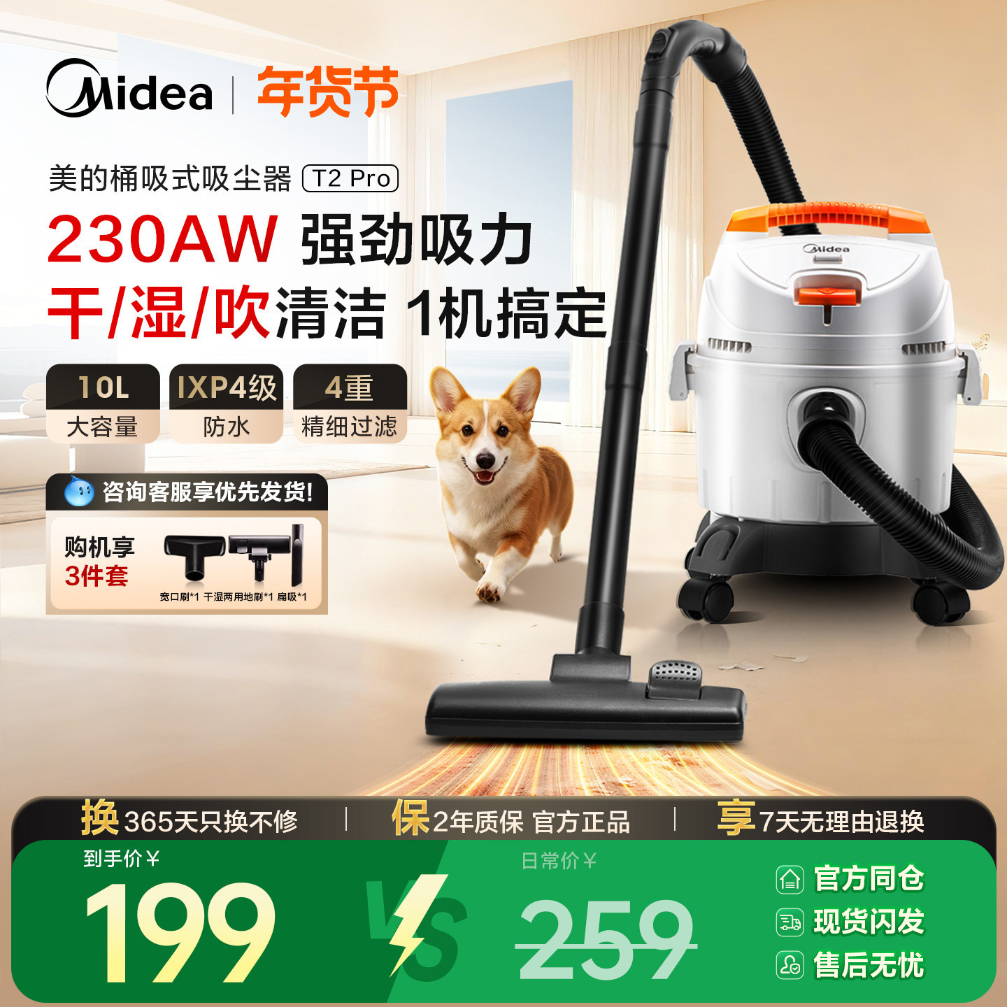 美的吸尘器T2pro家用大吸力大功率桶式手持式装修吸尘机湿吸强吹