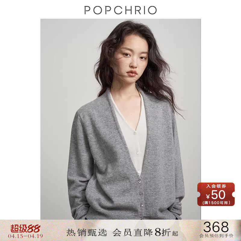 POPCHRIO欧可芮◆慵懒风V领假两件针织毛衣打底开衫内搭上衣女冬