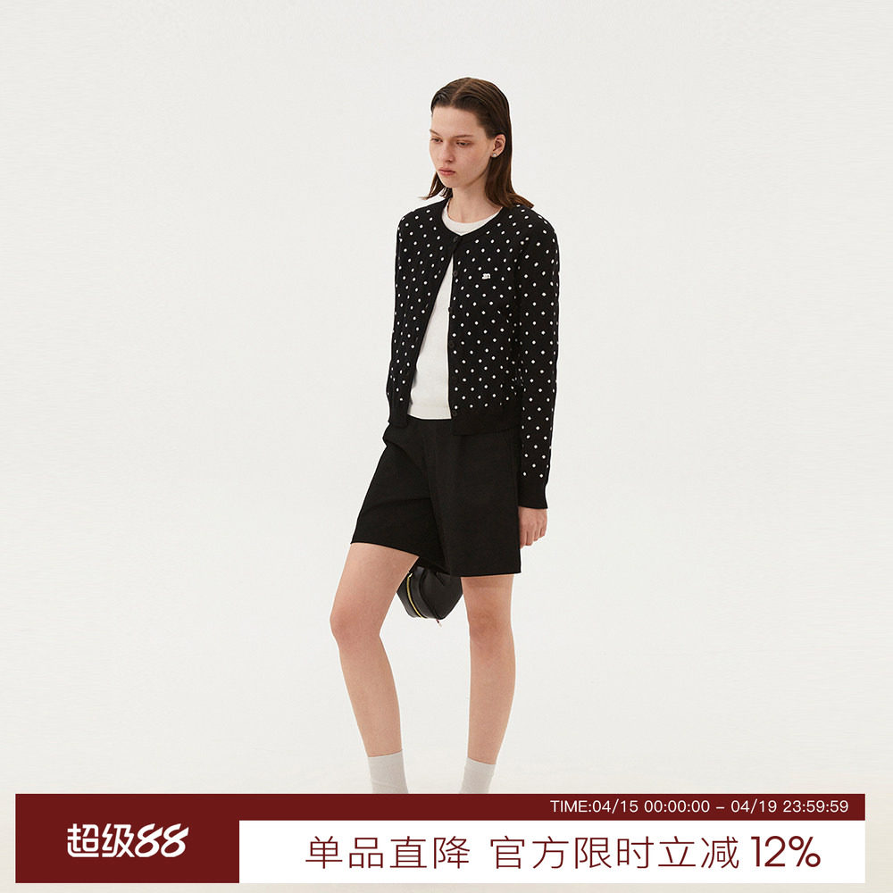 INRM 假两件打底针织衫 高级感复古波点圆领显瘦开衫针织衫外套女