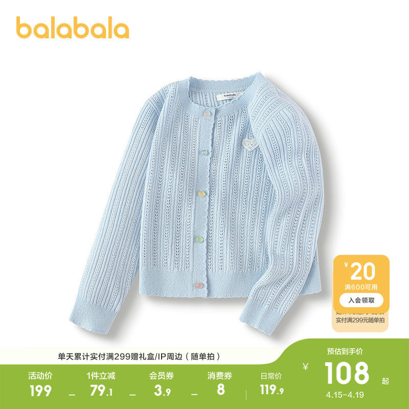巴拉巴拉童装女童毛衫提花针织衫打底2026春秋开衫宝宝毛衣上衣潮