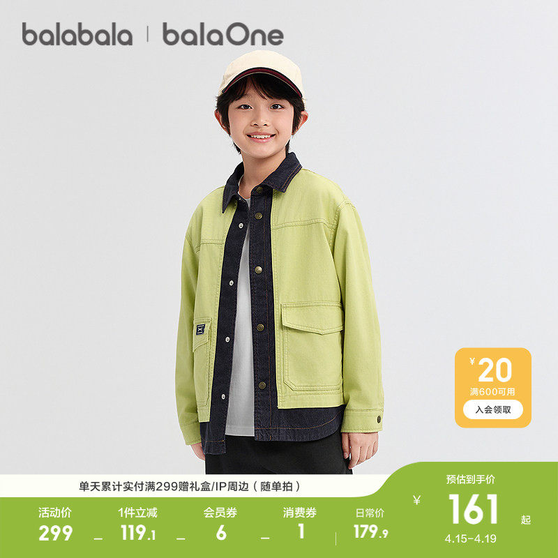 巴拉巴拉童装男童外套儿童上衣衣服新款春装全棉牛仔拼接休闲时尚